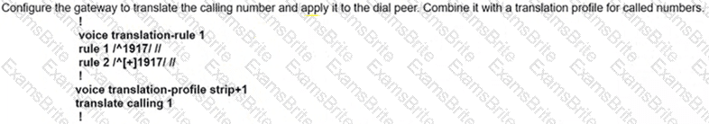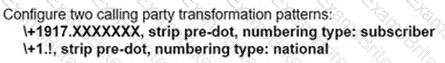 When a call Is delivered to a gateway, the calling and called party number must be adapted to the PSTN service requirements of the trunk group. If a call is destined locally, the + sign and the explicit country code must be replaced with a national prefix. For the same city or region, the local area code must be replaced by a local prefix as applicable. Assuming that a Cisco UCM has a SIP trunk to a New York gateway (area code 917). which two combinations of solutions localize the calling and called party for a New York phone user? (Choose two.)