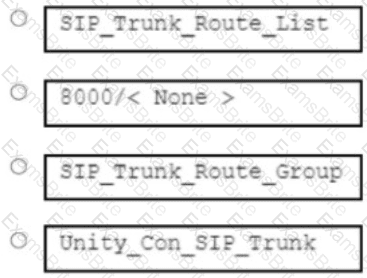 An engineer must create a route pattern for a SIP trunk with the pattern named Unity_Con_SIP_Trunk and a voicemail pilot number 8000/< None > in Cisco Unity Connection. Which value must the engineer enter for the Gateway/Route List field?