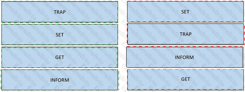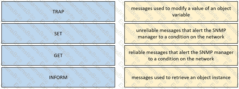 Drag and drop the SNMPv3 message types from the left onto the corresponding definitions on the right.