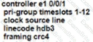 Refer to the exhibit. An administrator must replace the T1 card with an E1 card. What is the correct configuration if the administrator was asked to configure 12 time slots?