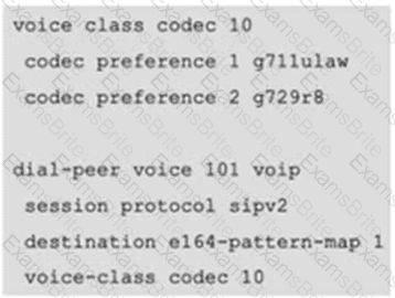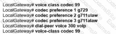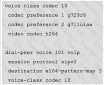 An engineer must configure codec on a Cisco Unified Border Element to prefer the G.711 ulaw and use G.711 codec as the