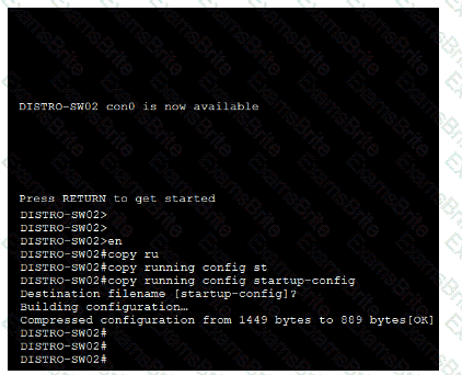 3. Complete the Rapid-PVST+ configuration on DISTRO-SW2 by ensuring it it the secondary root switch for all VLANs in the range of 1 to 1005.