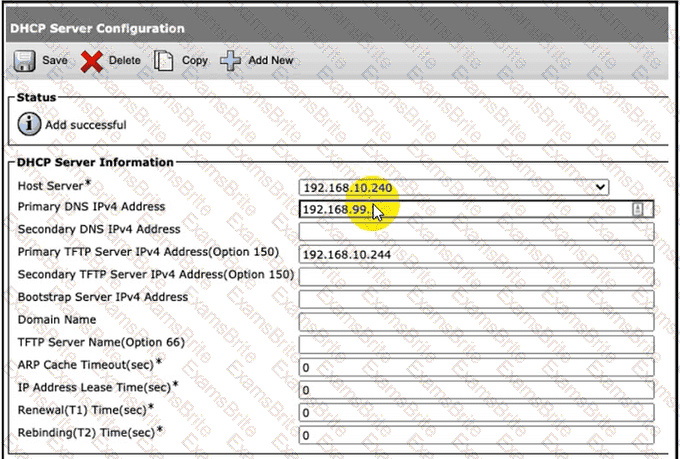 Refer to the exhibit. A collaboration engineer configures Cisco UCM to act as a DHCP server. What must be done next to configure the DHCP server?