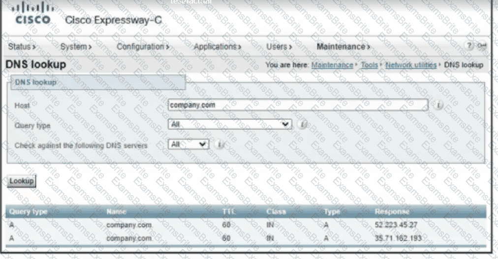 engineer runs DNS lookup tool in Cisco Expressway-C to troubleshoot tie What IS me cause of the issue?