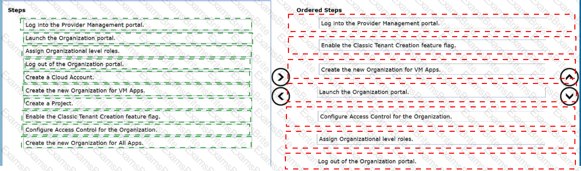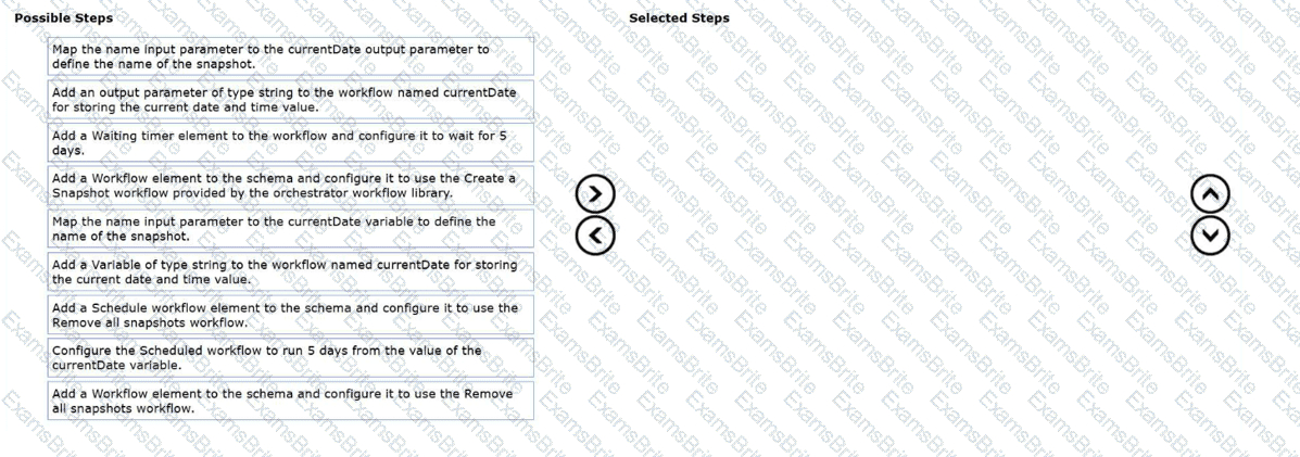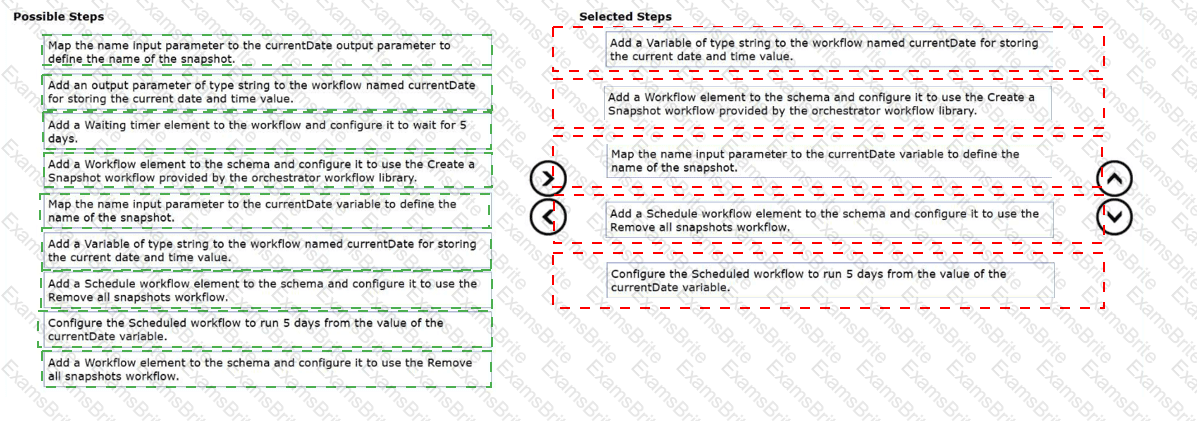 Drag and drop the seven steps from the Steps list into the Ordered Steps list and place them in the correct order to meet the objective. (Choose seven.)