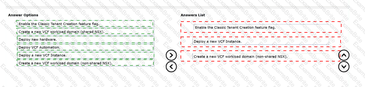 An administrator is tasked with configuring a multi-tenant environment within the organization's VMware Cloud Foundation (VCF) deployment. Requirements are: