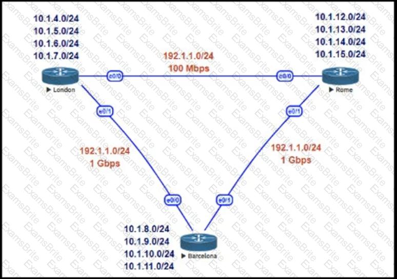 This network is running EIGRP as the routing protocol and the internal networks are being advertised in EIGRP. Based on the link speeds, all traffic between London and Rome is getting propagated via Barcelona and the direct link between London and Rome is not being utilized under normal working circumstances. The EIGRP design should allow for efficiency in the routing table by minimizing the routes being exchanged. The link between London and Rome should be utilized for specific routes. Which two steps accomplish this task? (Choose two.)