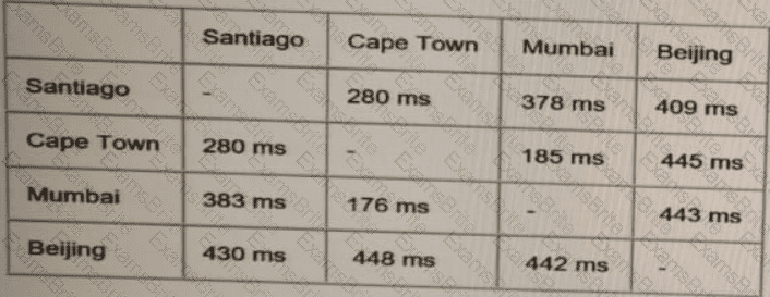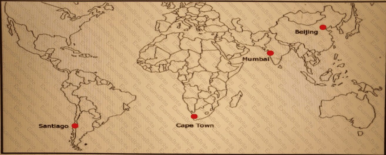 ACME Mining has four data centers in Santiago. Cape Town. Mumbai, and Beijing, full-mesh connected via a 400 Mb/s EVP-LAN They want to deploy a new mission-critical application with these