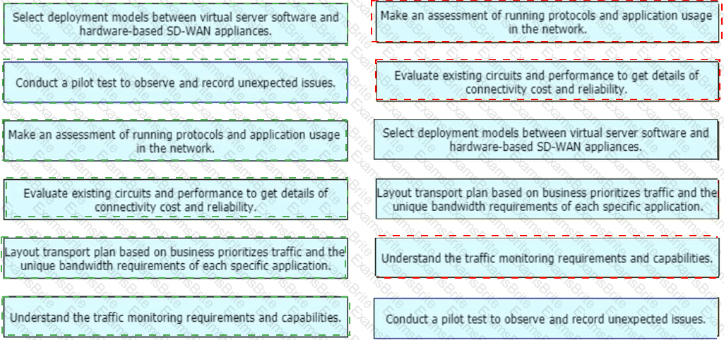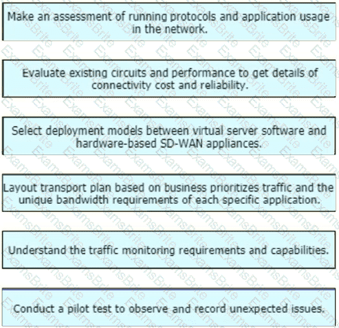 With regards to the deployment planning, drag and drop the actions from the left onto the corresponding steps on the right.