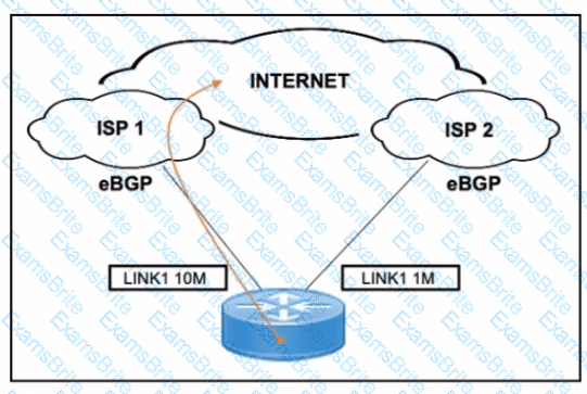 A customer has two eBGP internet links: one primary high-speed (10 Mbps) and one backup low-speed (1 Mbps). The requirement is to use the 10M link (ISP 1) for all inbound/outbound traffic and only use the 1M link (ISP 2) during failure.