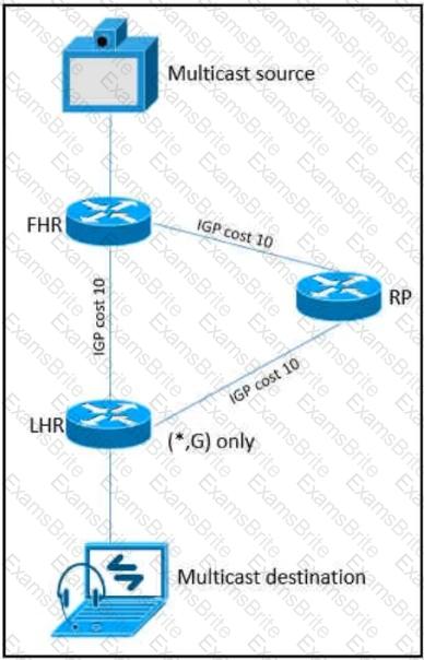 As part of a redesign project, you must predict multicast behavior. What happens to the multicast traffic received on the shared tree (*,G), if it is received on the LHR interface indicated?