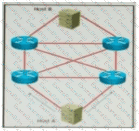 Refer to the exhibit. All links are P2P Layer 3. A high availability application is synchronizing data between Host A and Host B. To increase the chance of delivery, the same data is sent twice from Host A on two different NICs toward the two NICs on Host B.