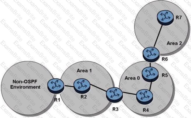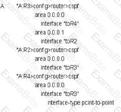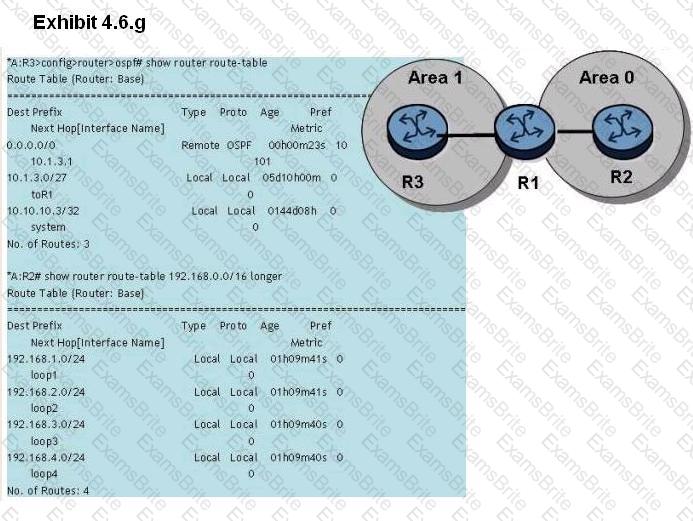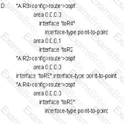 Given the topology and the show commands, and assuming that router R2 advertises all of its loopbacks into OSPF, what is the correct router R1 configuration?