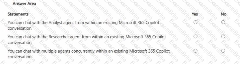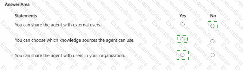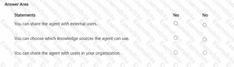 For each of the following statements, select Yes if the statement is true. Otherwise, select No.