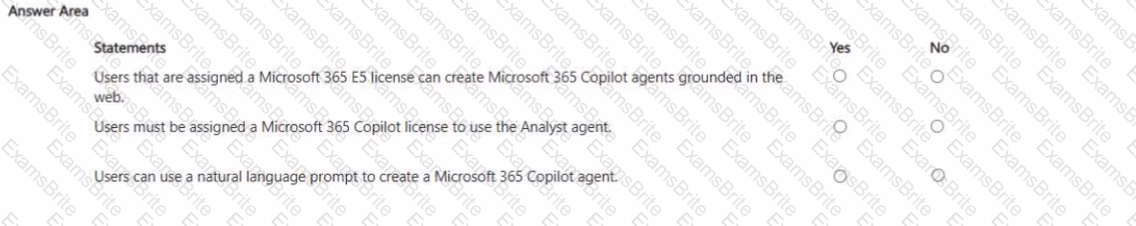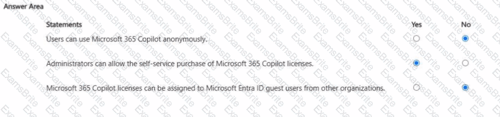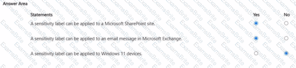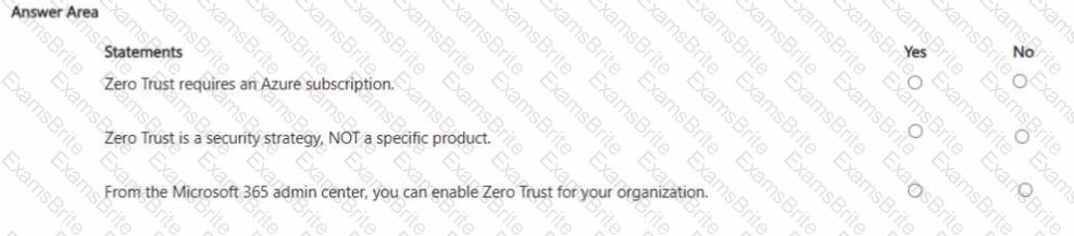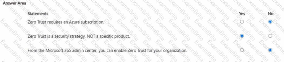For each of the following statements, select Yes if the statement is true. Otherwise, select No. NOTE: Each correct selection is worth one point