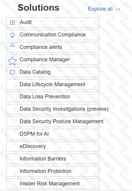What should you use in the Microsoft Purview portal? To answer, select the appropriate solutions in the answer area.