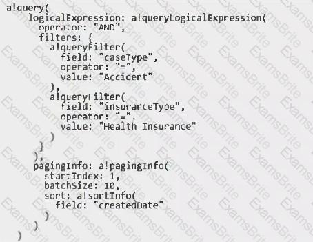 An insurance application has a dashboard in which all the cases with "Accident" case type and "Health Insurance" insurance type are displayed to the user, using the following query:
