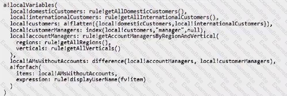 You need to write an expression to retrieve a list of all account managers who don't currently have an active customer account.