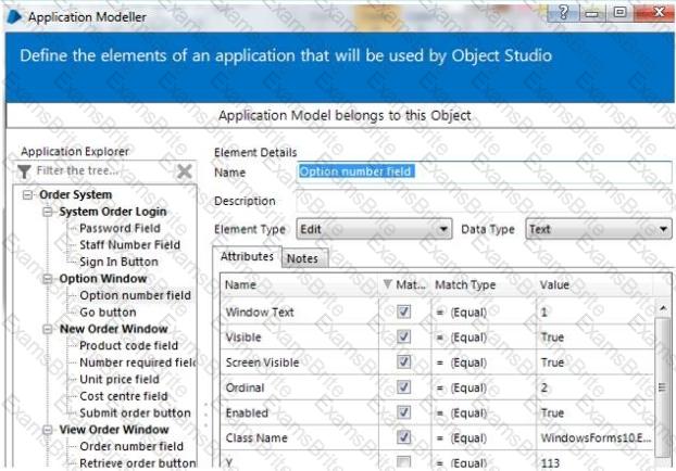 When entering an option within the Training Order system the relevant option number is entered into the Option number field as below The Option number input field has been spied in Blue Prism: