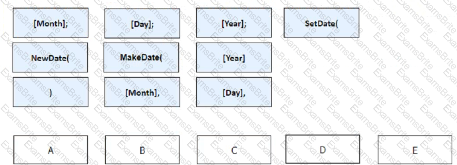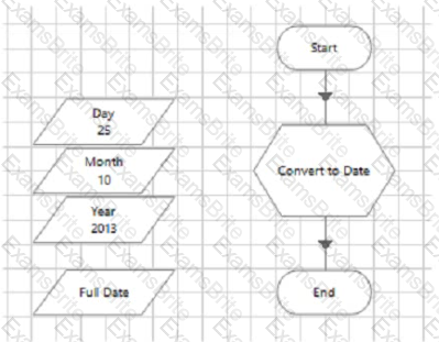 To enable this Process flow to function correctly, drag and drop the items below into the placement boxes (A - E). to create the coned Blue Prism expression for the Convert to Date' calculation stage, so that the 'Full Date' data item is populated with the appropriate date, based on the Day Month and Year data items: