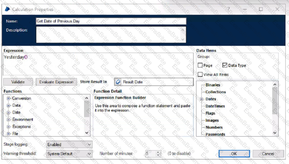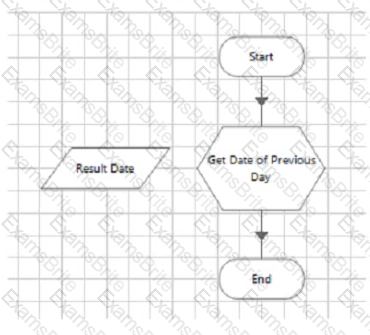 Examine the following Blue Prism Process diagram which is intended to get the date of the previous day as a date value: