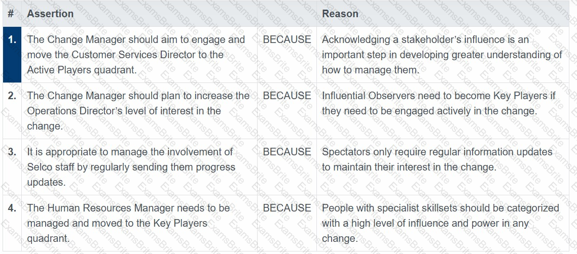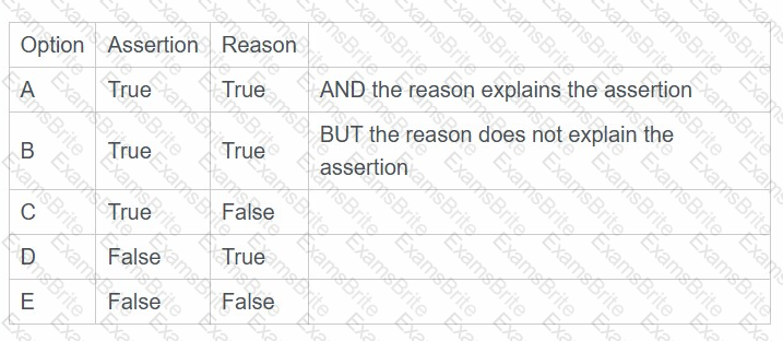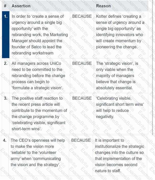 Lines 1 to 4 in the table below consist of an assertion statement and a reason statement. For each line identify the