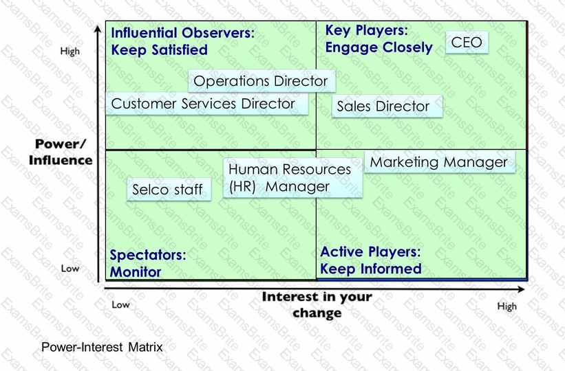 The Change Manager has mapped stakeholders onto a Power-Interest