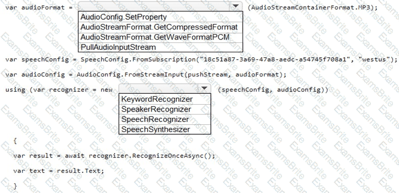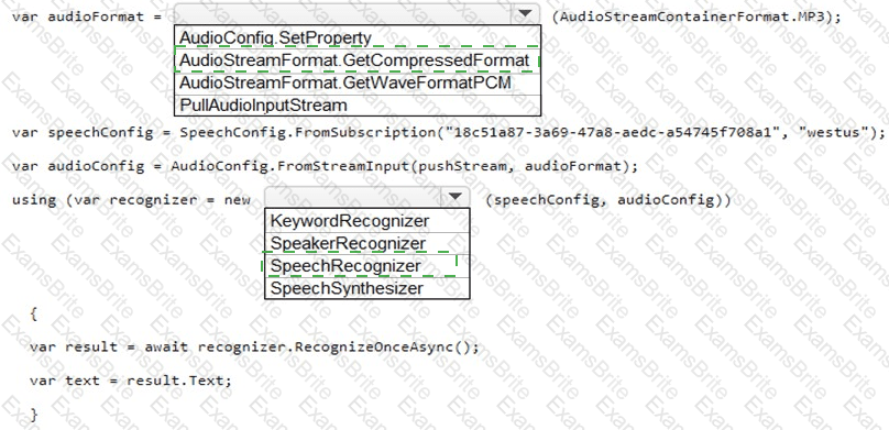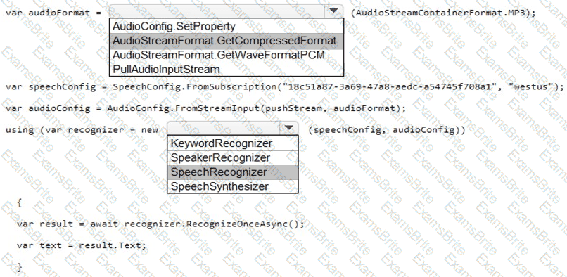 You are developing a streaming Speech to Text solution that will use the Speech SDK and MP3 encoding.