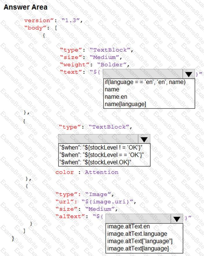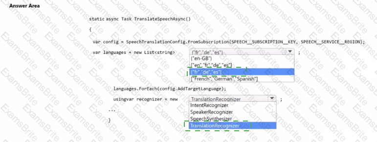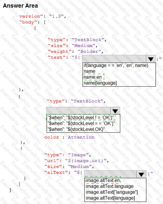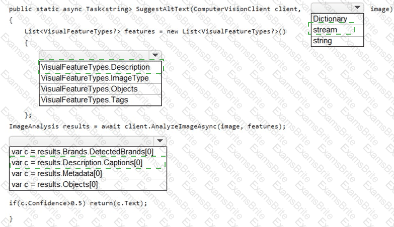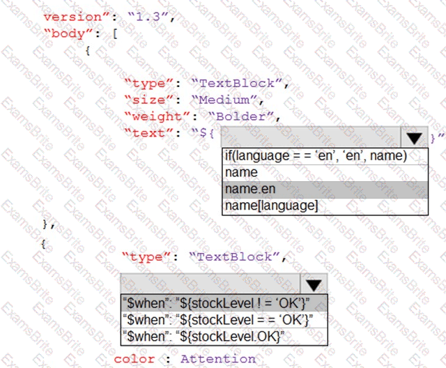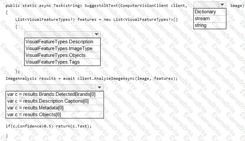 How should you complete the code? To answer, select the appropriate options in the answer area.