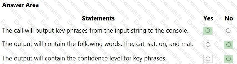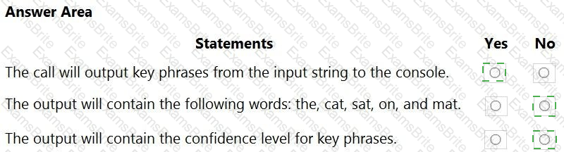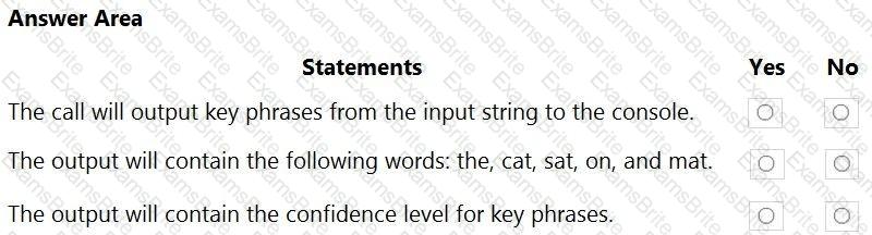 GetKeyPhrases(textAnalyticsClient, "the cat sat on the mat");