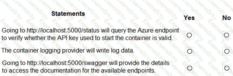 For each of the following statements, select Yes if the statement is true. Otherwise, select No.