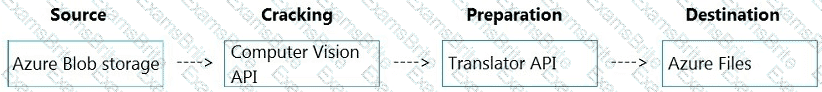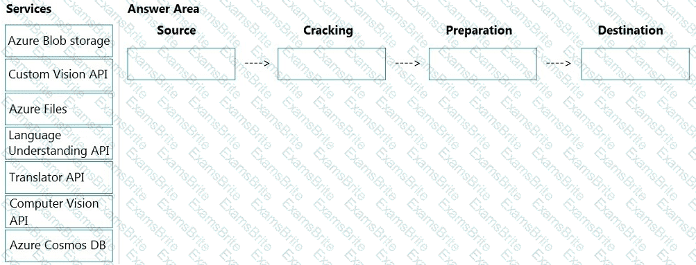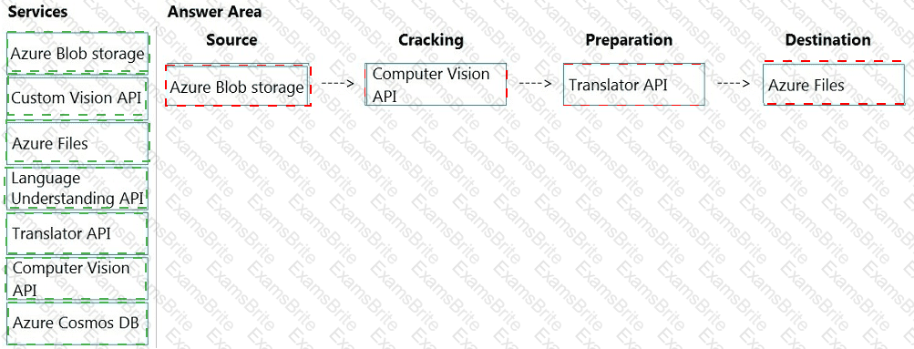 How should you complete the skillset design diagram? To answer, drag the appropriate services to the correct stages. Each service may be used once, more than once, or not at all. You may need to drag the split bar between panes or scroll to view content.