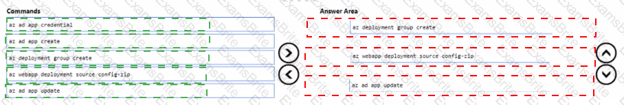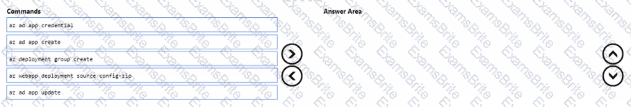 Which three Azure CLl commands should you run in sequence? To answer, move the appropriate commands from the list of commands to the answer area and arrange them in the client order.