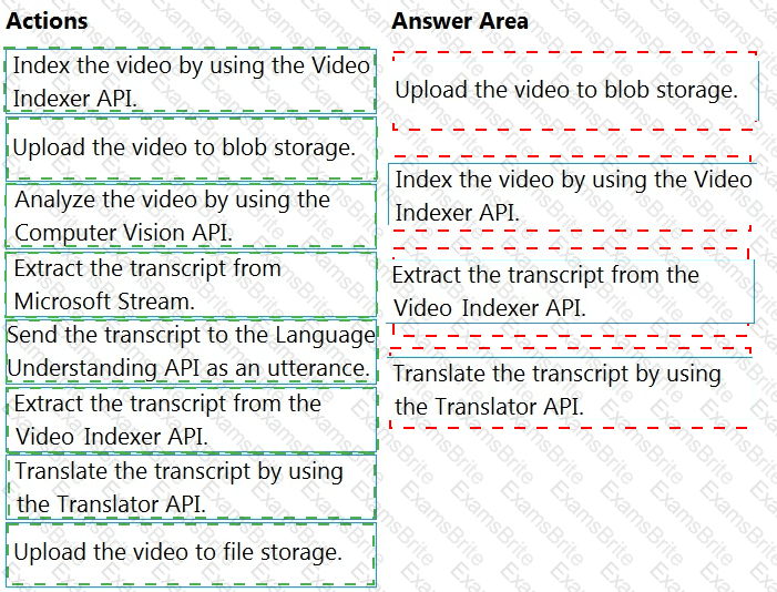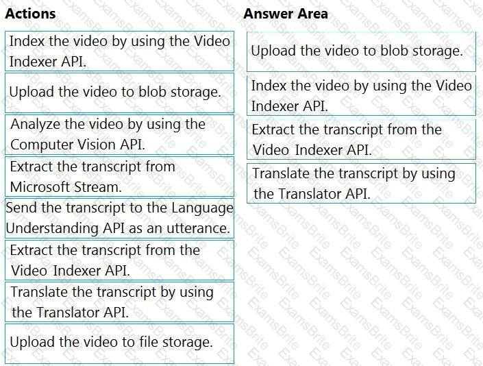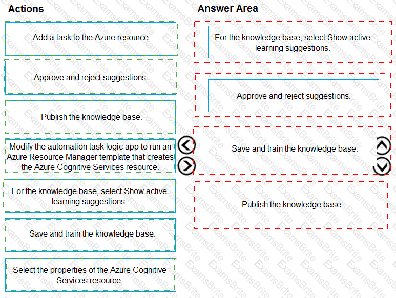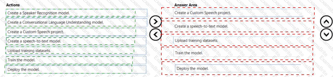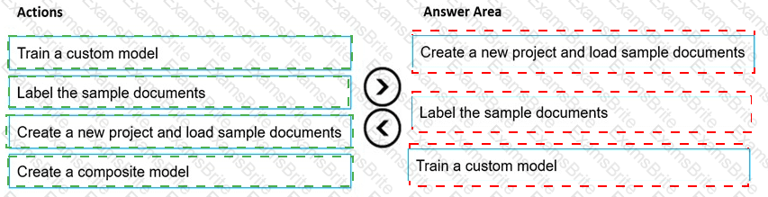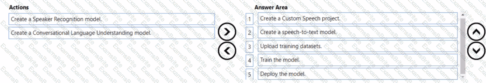 Which five actions should you perform in sequence? To answer, move the appropriate actions from the list of actions to the answer area and arrange them in the correct order.