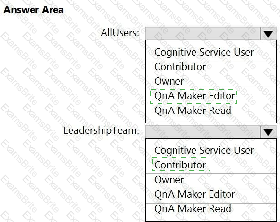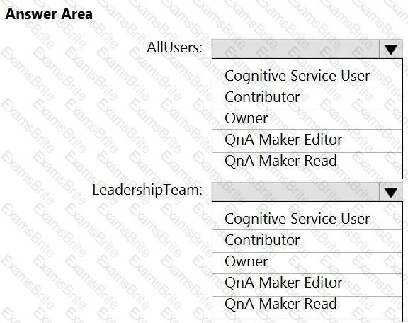 Which role should you assign to AllUsers and LeadershipTeam? To answer, select the appropriate options in the answer area.