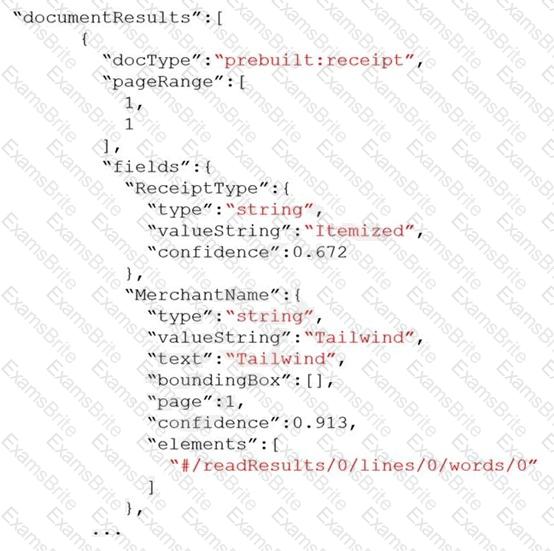 You upload the receipt images to the From Recognizer API for analysis, and the API ret urns the following JSON.