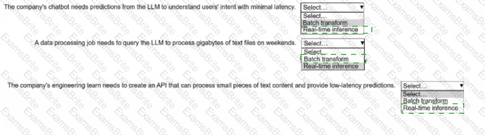 Select the correct inference mode from the following list for each use case. Each inference mode should be selected one or more times. (Select THREE.)