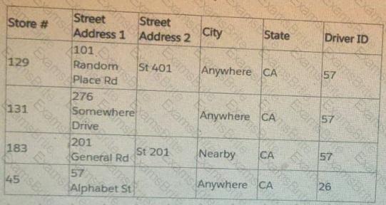 A client wants to view stores serviced by delivery drivers on a map. The have the information provided in the table below: