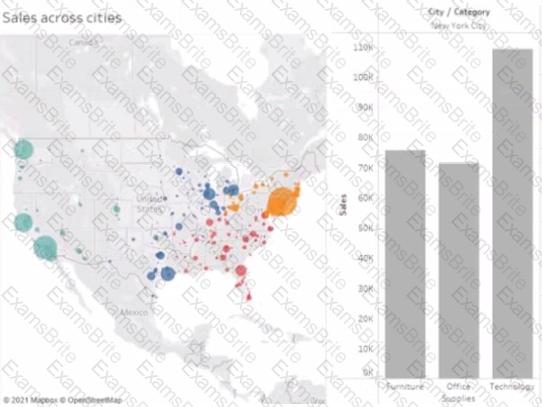 You have the following chart that shows the number of sales made in different cities.