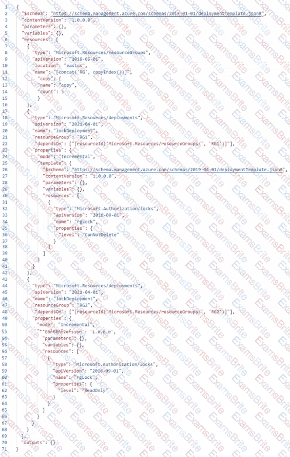 You create a file named Deploy json as shown in the following exhibit
