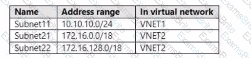 Subnet1 and Subnet2 are in a virtual network named VNET1.
