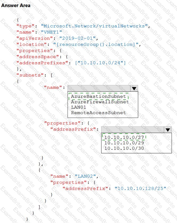 You plan to use an Azure Resource Manager template to deploy a virtual network named VNET1 that will use Azure Bastion.