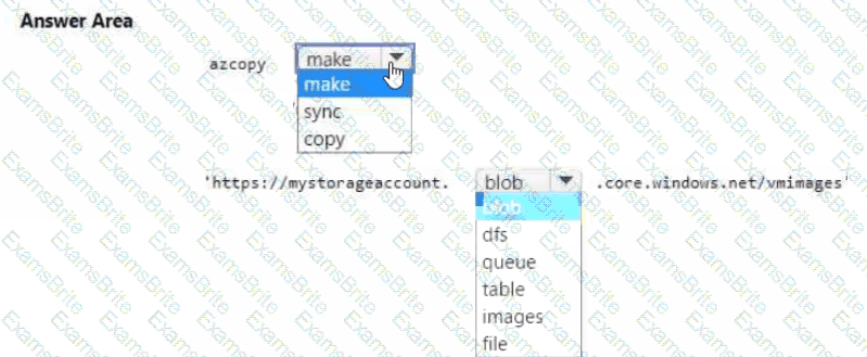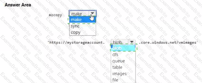 You plan to copy an on-premises virtual machine image to a container named vmimages.