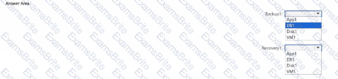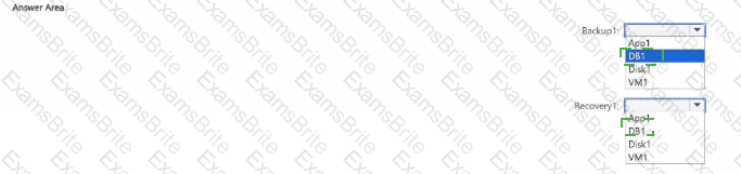 Which resource can be backed up to Backup1, and which resource can be backed up to Recovery1? To answer, select the appropriate options in the answer area.