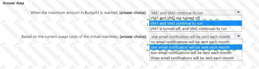 You need to configure the alerts for VM1 and VM2 to meet the technical requirements.