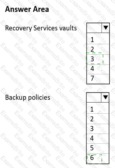 What is the minimum number of Recovery Services vaults and backup policies you should create? To answer, select the appropriate options in the answer area.