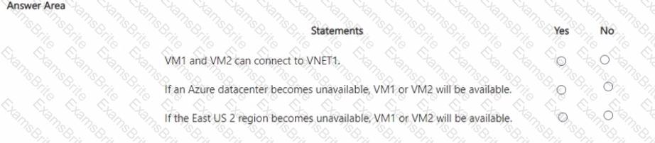 You have an Azure subscription that contains a virtual network named VNET1 in the East US 2 region. Network Interfaces named VM1-NI and VM2-NI are connected to VNET1.