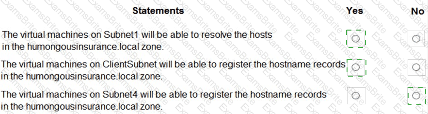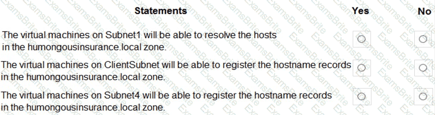 For each of the following statements, select Yes if the statement is true. Otherwise, select No.