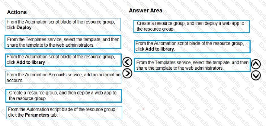 Which three actions should you perform in sequence? To answer, move all actions from the list of actions to the answer area and arrange them in the correct order.