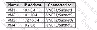 You need to ensure that VM1 can communicate with VM4. The solution must minimize administrative effort.